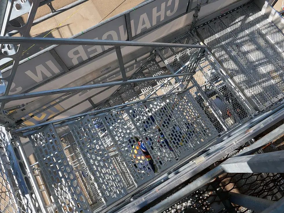 It replaces the ladder inside a scaffold for a safer solution. This space saving compact design can be erected inside and outside of the scaffold as well as a in a standalone tower. The small footprint stair provides the most efficient use of space while the convenient 44-degree angle of inclination offers optimum user comfort.